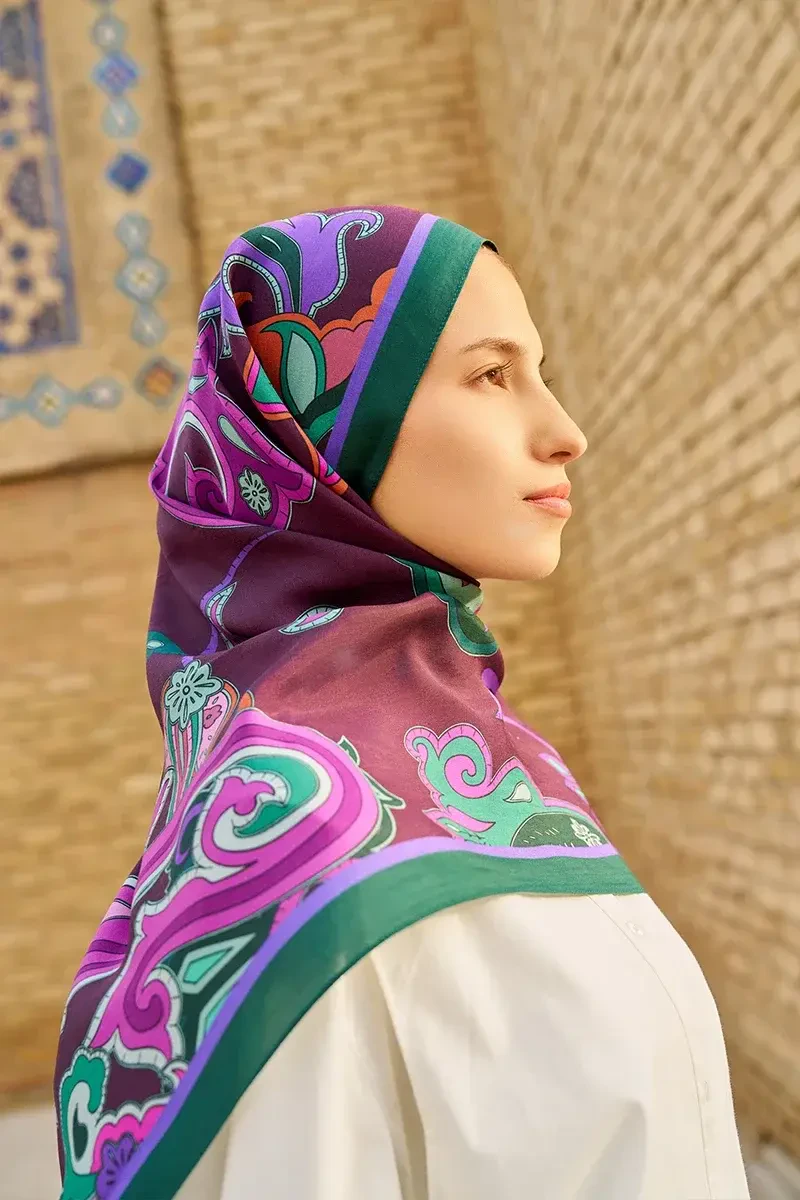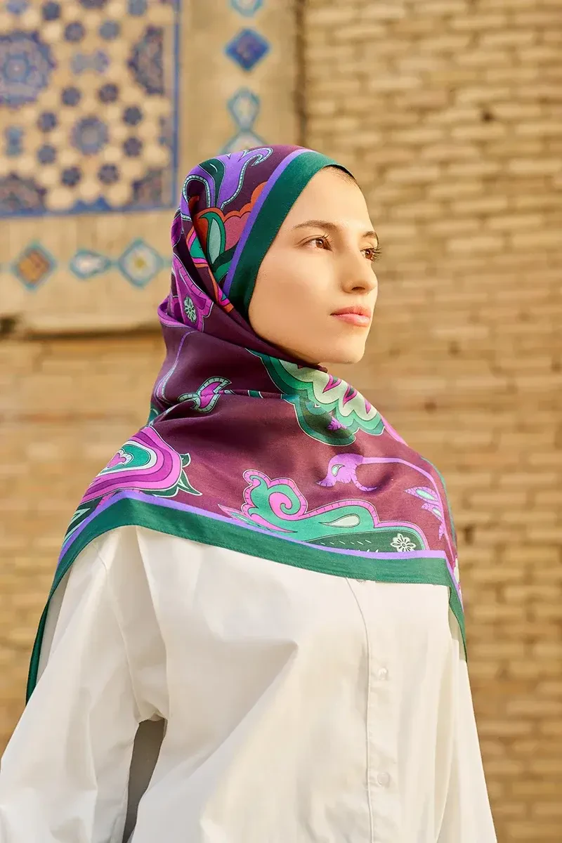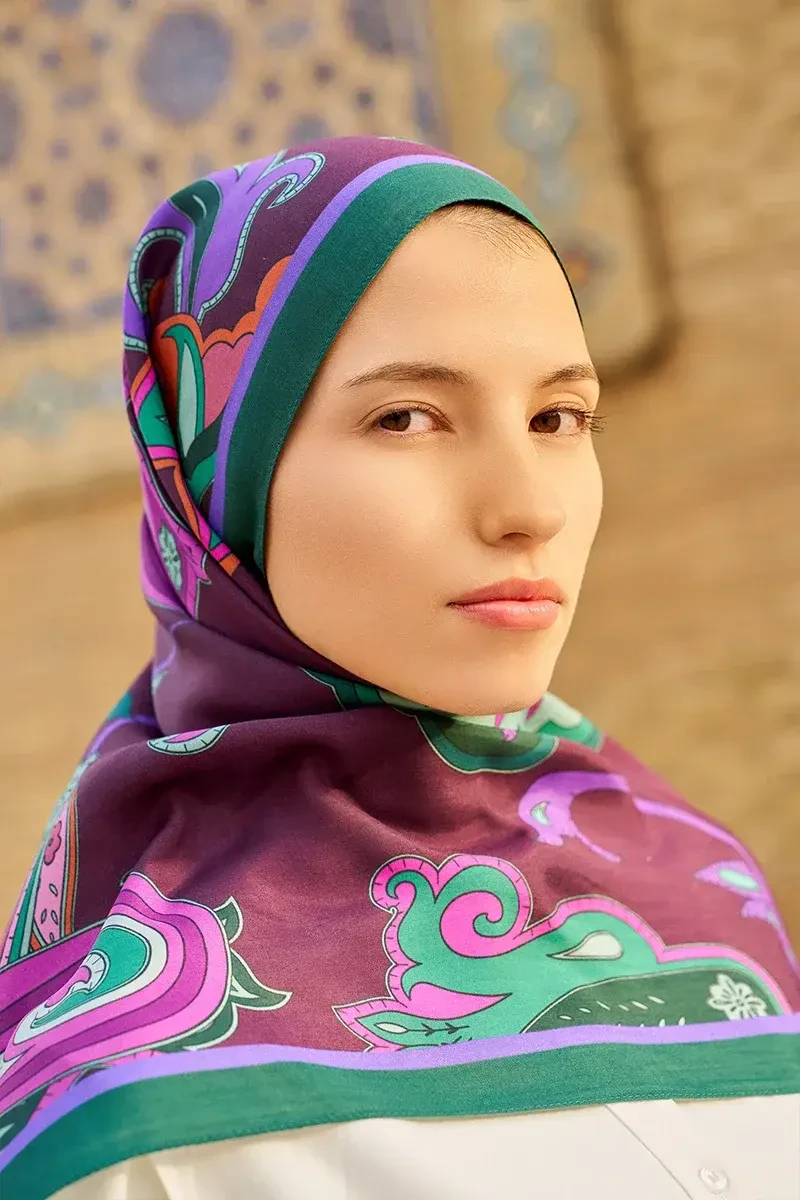 Bramble Floş Viskon Şal - Yeşil / Mor