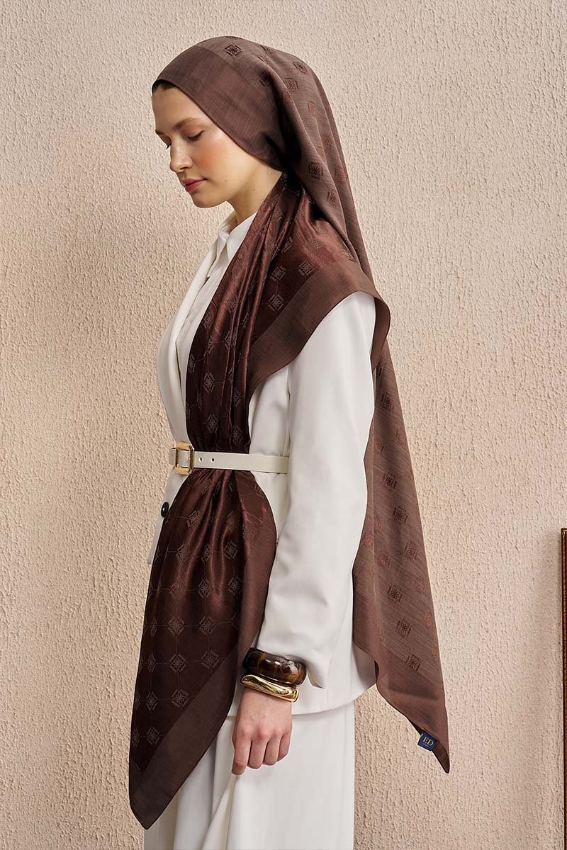 Çift Taraflı Logo Desen Şal - Kahverengi