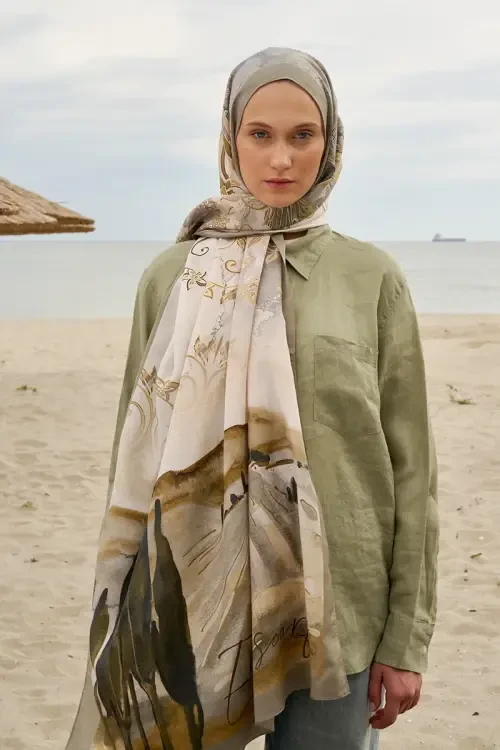 Doğa Esintisi Pamuk İpek Şal - Vizon