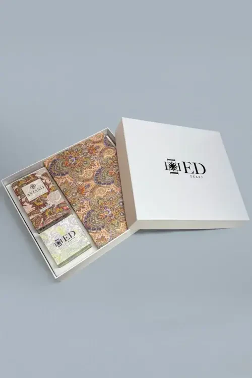 Bu hediye seti, müşterinin tercih ettiği şal ile kişiselleştirilmiş olarak tamamlanır. Şal sabit değildir, müşteri dilediği modeli sepete ekleyerek seti oluşturur. Şal sepete ücretsiz eklenir.
