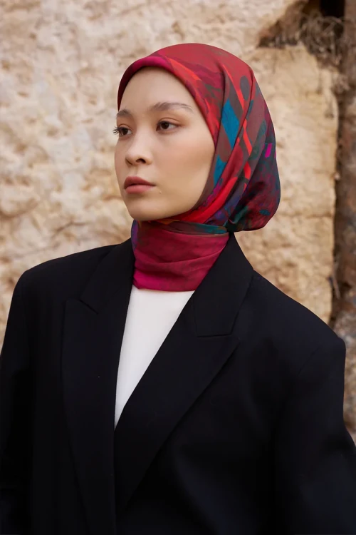 Glaze Vase Desen Eşarp - Kırmızı