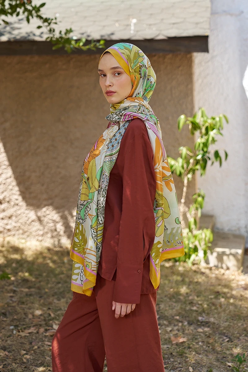 %57 floş ve %43 liyosel karışımı kumaşıyla hafiflik ve nefes alabilirlik sunan Fierra desen şal, liyoselin yumuşak ve serinletici dokusuyla sıcak havalarda konfor sağlar. Dökümlü ve zarif yapısıyla şıklığınızı tamamlar. Kaymayan yüzeyi ve şekil alabilen formu sayesinde gün boyu rahatlık sunar; günlük stilinizden özel davetlere kadar her anınıza eşlik eder.