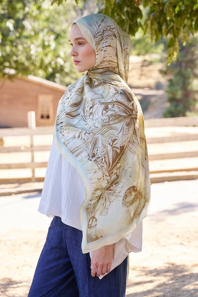 %57 floş ve %43 liyosel karışımı kumaşıyla hafif, dökümlü ve nefes alabilen bir yapı sunar. Liyoselin doğallığı sayesinde yumuşak dokulu olan şal, gün boyu konfor sağlar. Kaymayan yüzeyi ve kolay şekil alabilen formu sayesinde her bağlama stiline uyum sağlar; yaz stilinizi tamamlayan pratik ve zarif bir parçadır.