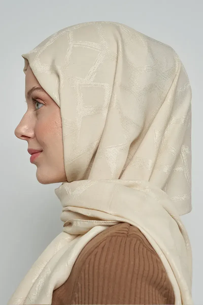 Jakar Pamuk Şal Mozaik Desen - Krem