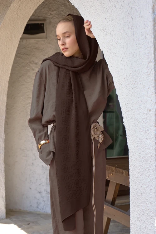 Gelince Haber VerWelness koleksiyonunun öne çıkan parçalarından Logo Desen Şal, sade ama etkileyici monogram desenleriyle stilinize zarafet katıyor. %43 pamuk ve %57 Naia kumaş karışımı, şala doğal yumuşaklık ve nefes alabilirlik kazandırıyor. Naia ipliği sayesinde hafif, dayanıklı ve sürdürülebilir bir kullanım sunan bu şal, zarif ve dökümlü yapısıyla her mevsim şıklığınızı tamamlar. Kaymayan dokusu ve kolay şekil alabilen formuyla gün boyu rahatlık sağlar. Günlük şehir stilinden özel davetlere kadar her kombinde modern ve zamansız bir şıklık isteyen kadınlar için ideal.