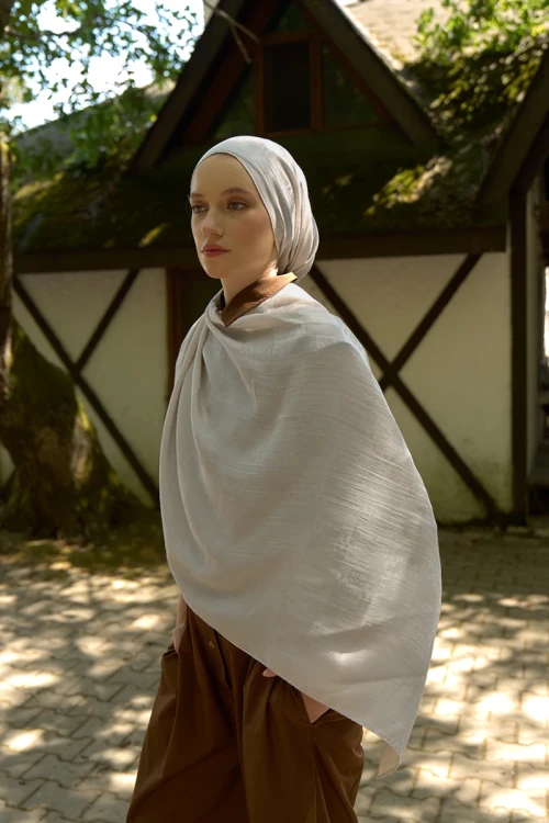 %43 pamuk ve %57 Naia kumaş karışımı sayesinde hafif, nefes alabilen ve doğal yumuşaklıkta bir kullanım sunar. Naia ipliği, şala dayanıklılık ve sürdürülebilirlik kazandırırken, kaymayan dokusu ve rahat dökümlü formuyla gün boyu konfor sağlar. Günlük şehir şıklığından özel davetlere kadar her ortamda tarzınızı vurgular.