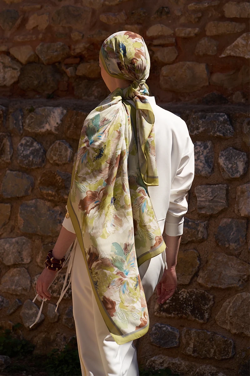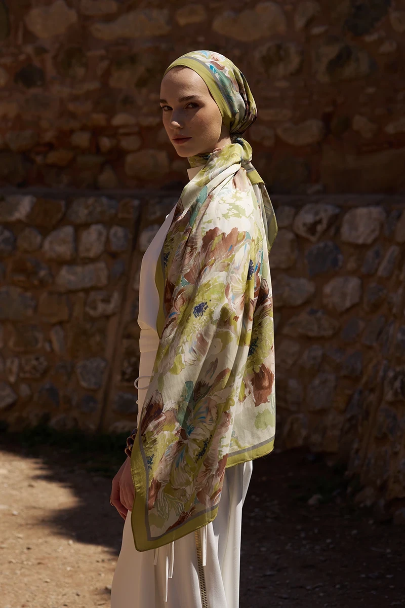 Sunrise Çiçek Desen Şal - Yağ Yeşili