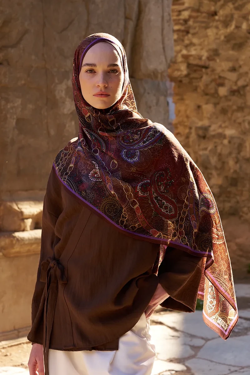 Doğal yün ve ipeğin mükemmel uyumunu yansıtan şallarımızın her bir deseni ustalıkla hazırlanmış ve titizlikle dokunmuştur, böylece kendinizi her zaman özel ve özgün hissedebilirsiniz.